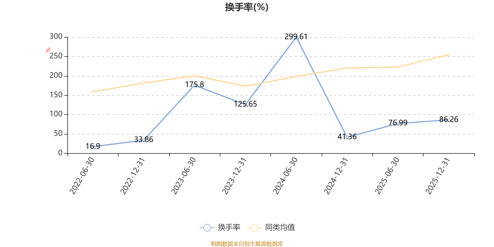 截至2025年12月31日,基金最近一年换手率约160.72%,持续1年低于同类均值。