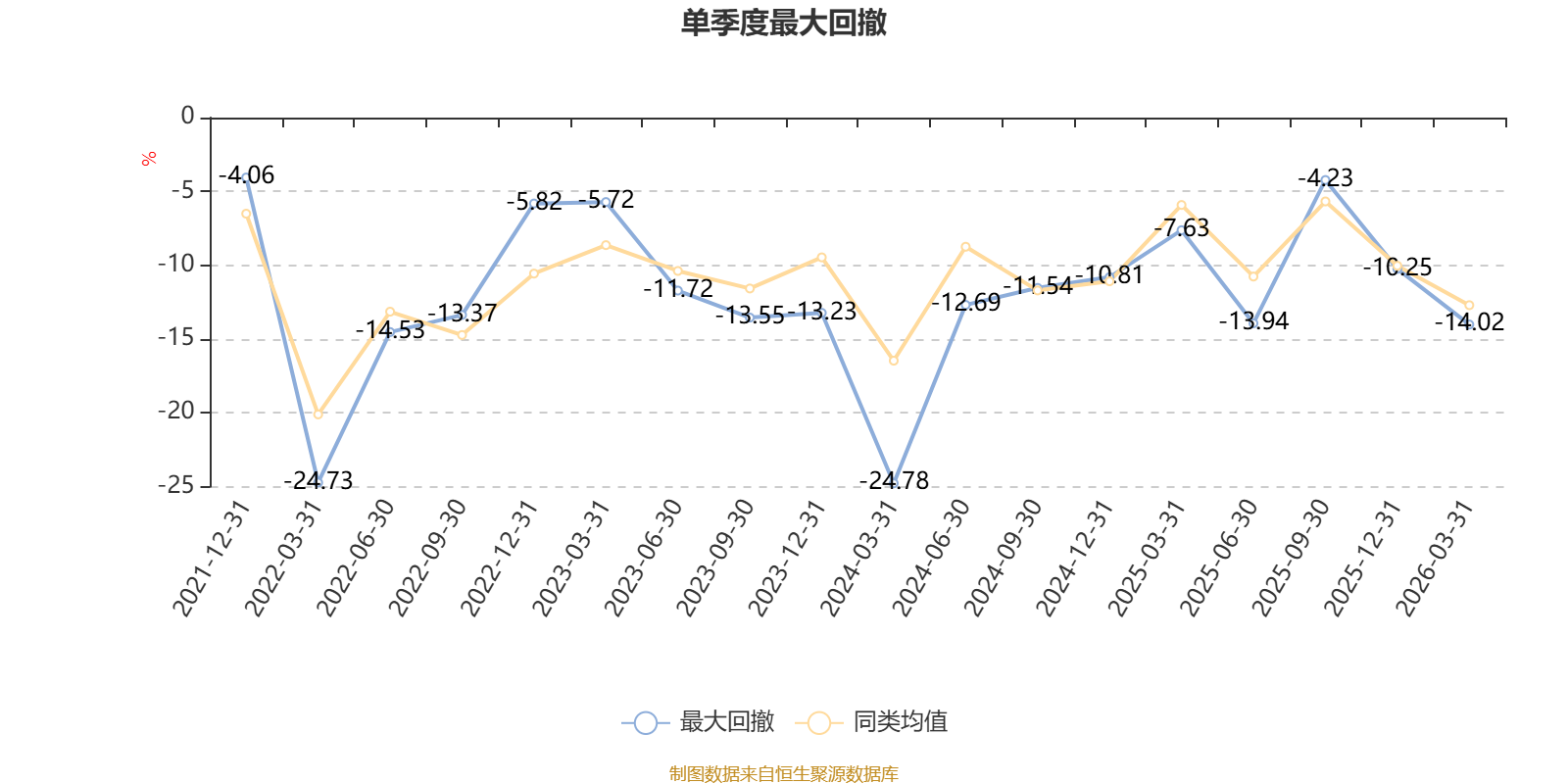 截至4月7日,基金近三年最大回撤为46.75%,同类可比基金排名522/551。单季度最大回撤出现在2024年一季度,为24.78%。