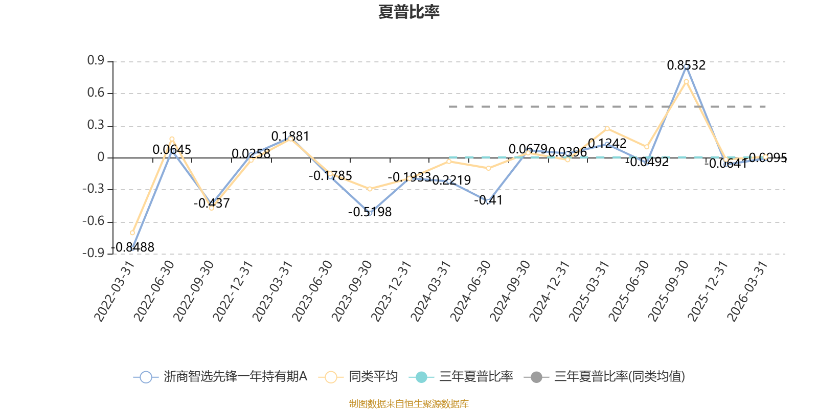 截至3月31日,基金近三年夏普比率为0.0017,位于同类可比基金519/550。