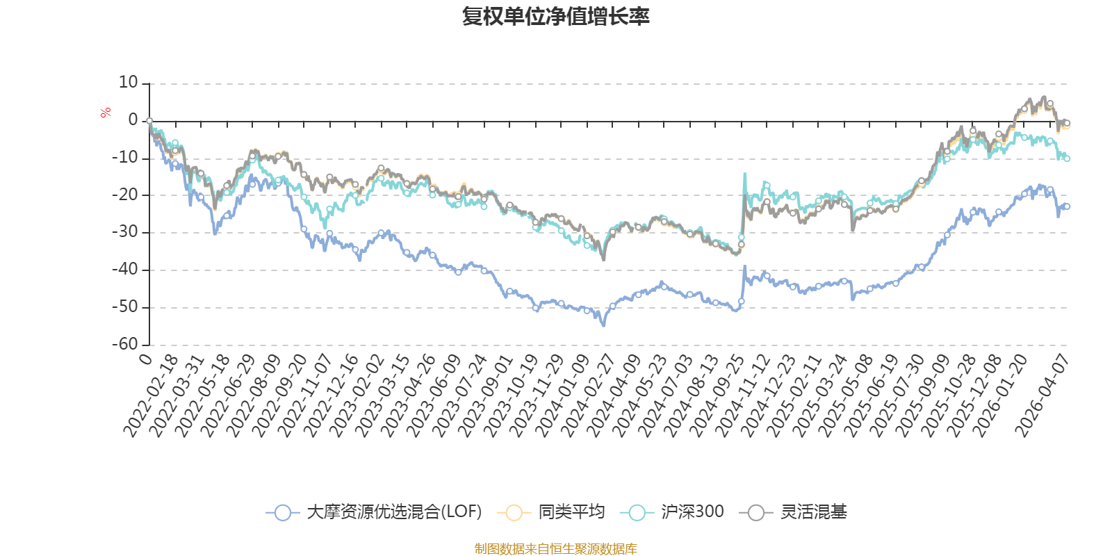 截至4月7日,大摩资源优选混合(LOF)近三个月复权单位净值增长率为-3.26%,位于同类可比基金735/1287;近半年复权单位净值增长率为2.45%,位于同类可比基金508/1286;近一年复权单位净值增长率为48.38%,位于同类可比基金362/1286;近三年复权单位净值增长率为18.18%,位于同类可比基金480/1286。