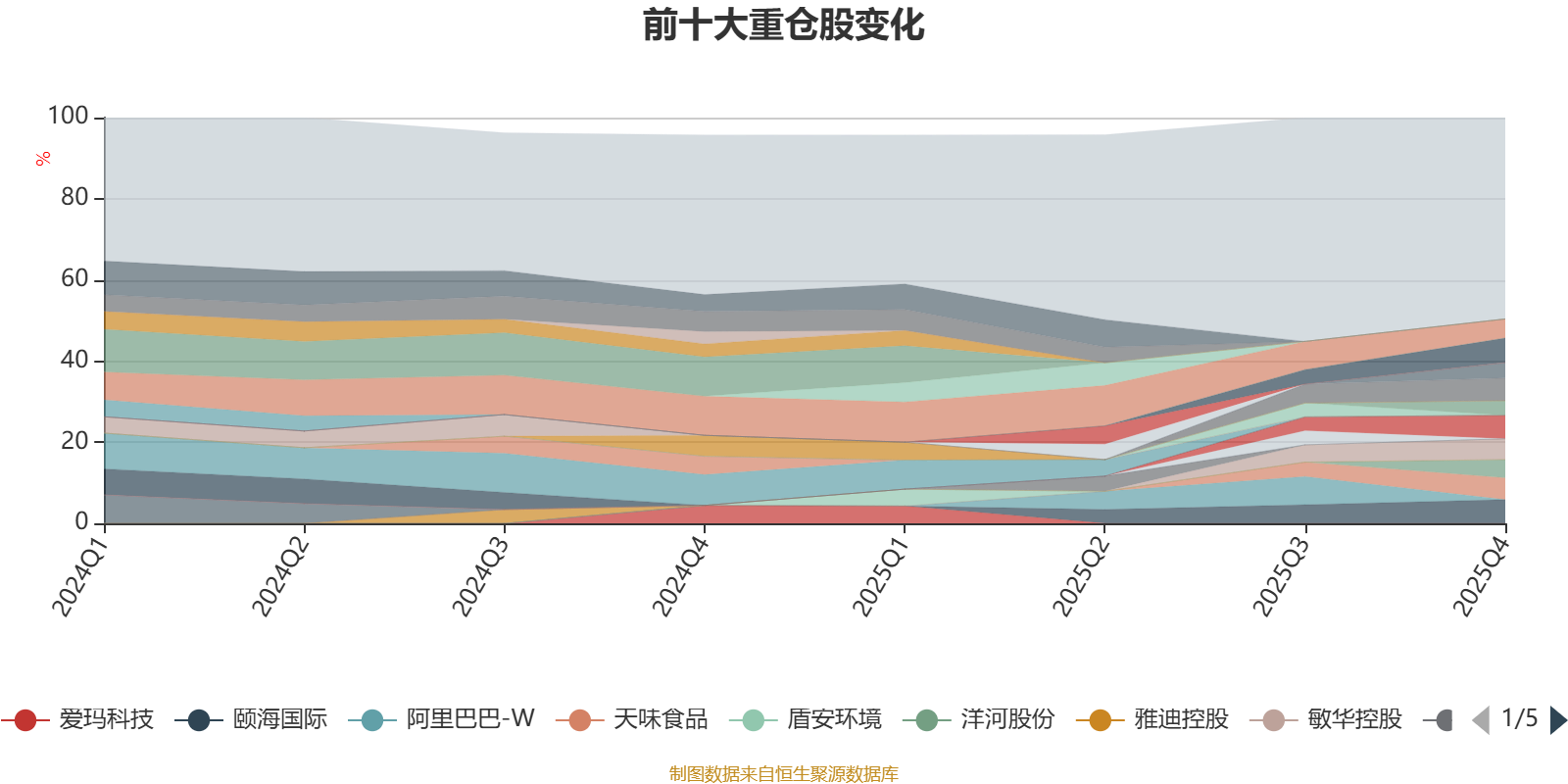 截至2025年末,基金十大重仓股分别是李宁、颐海国际、中炬高新、欧普照明、天味食品、敏华控股、腾讯控股、洋河股份、龙湖集团、景津装备。
