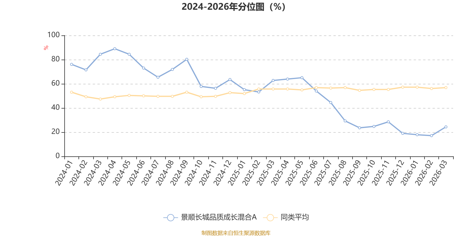 通过所选区间该基金净值增长率分位图,可以观察该基金与同类基金业绩比较情况。图为坐标原点到区间内某时点的净值增长率在同类基金中的分位数。