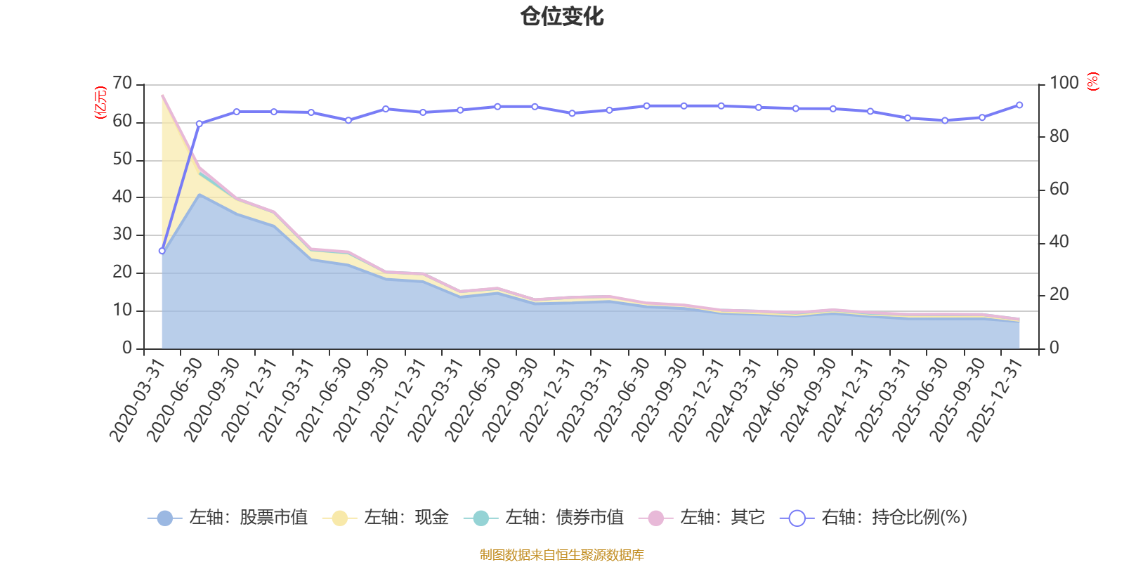 据定期报告数据统计,近三年平均股票仓位为90.13%,同类平均为86.12%。2025年末基金达到92.18%的最高仓位,2020年一季度末最低,为37.04%。