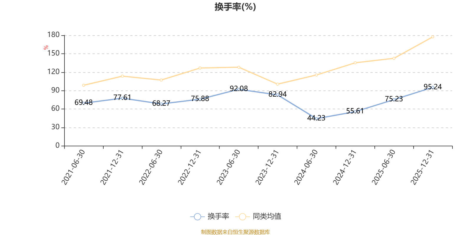 截至2025年12月31日,基金最近一年换手率约170.46%,持续低于同类均值。