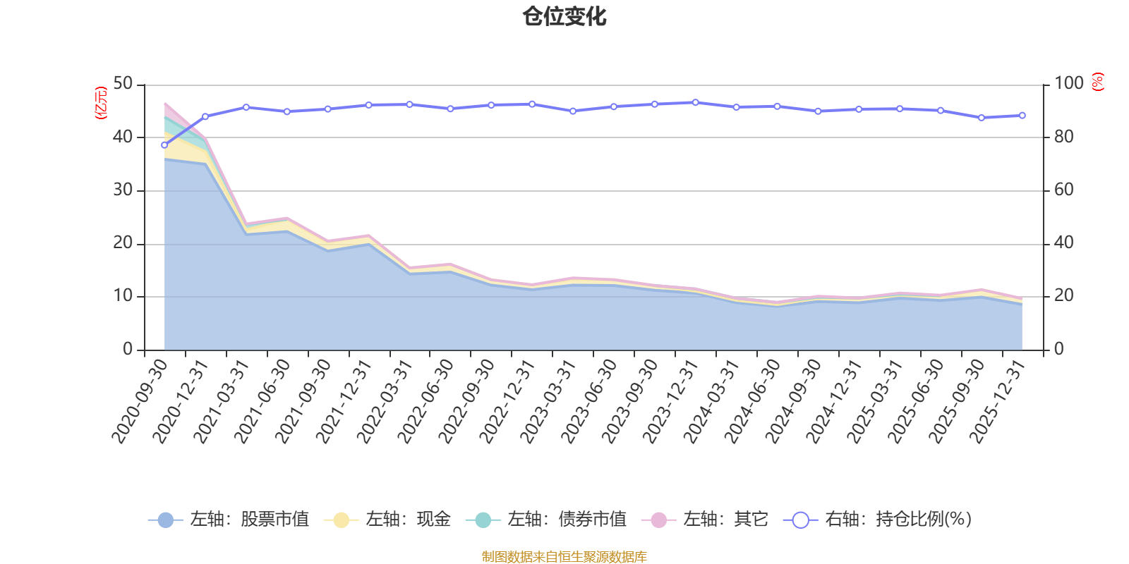 据定期报告数据统计,近三年平均股票仓位为90.73%,同类平均为87.64%。2023年末基金达到93.32%的最高仓位,2020年三季度末最低,为77.24%。