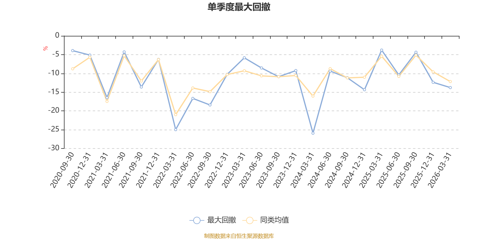 截至4月7日,基金近三年最大回撤为34.36%,同类可比基金排名99/178。单季度最大回撤出现在2024年一季度,为25.96%。