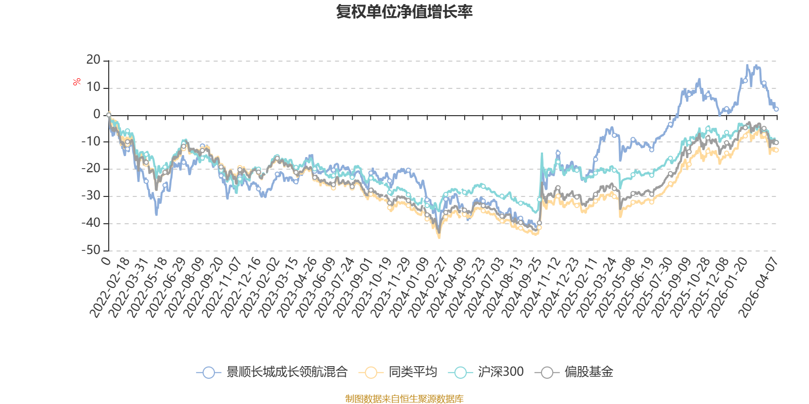 截至4月7日,景顺长城成长领航混合近三个月复权单位净值增长率为-6.21%,位于同类可比基金121/185;近半年复权单位净值增长率为-9.37%,位于同类可比基金147/185;近一年复权单位净值增长率为23.18%,位于同类可比基金143/185;近三年复权单位净值增长率为21.00%,位于同类可比基金59/177。