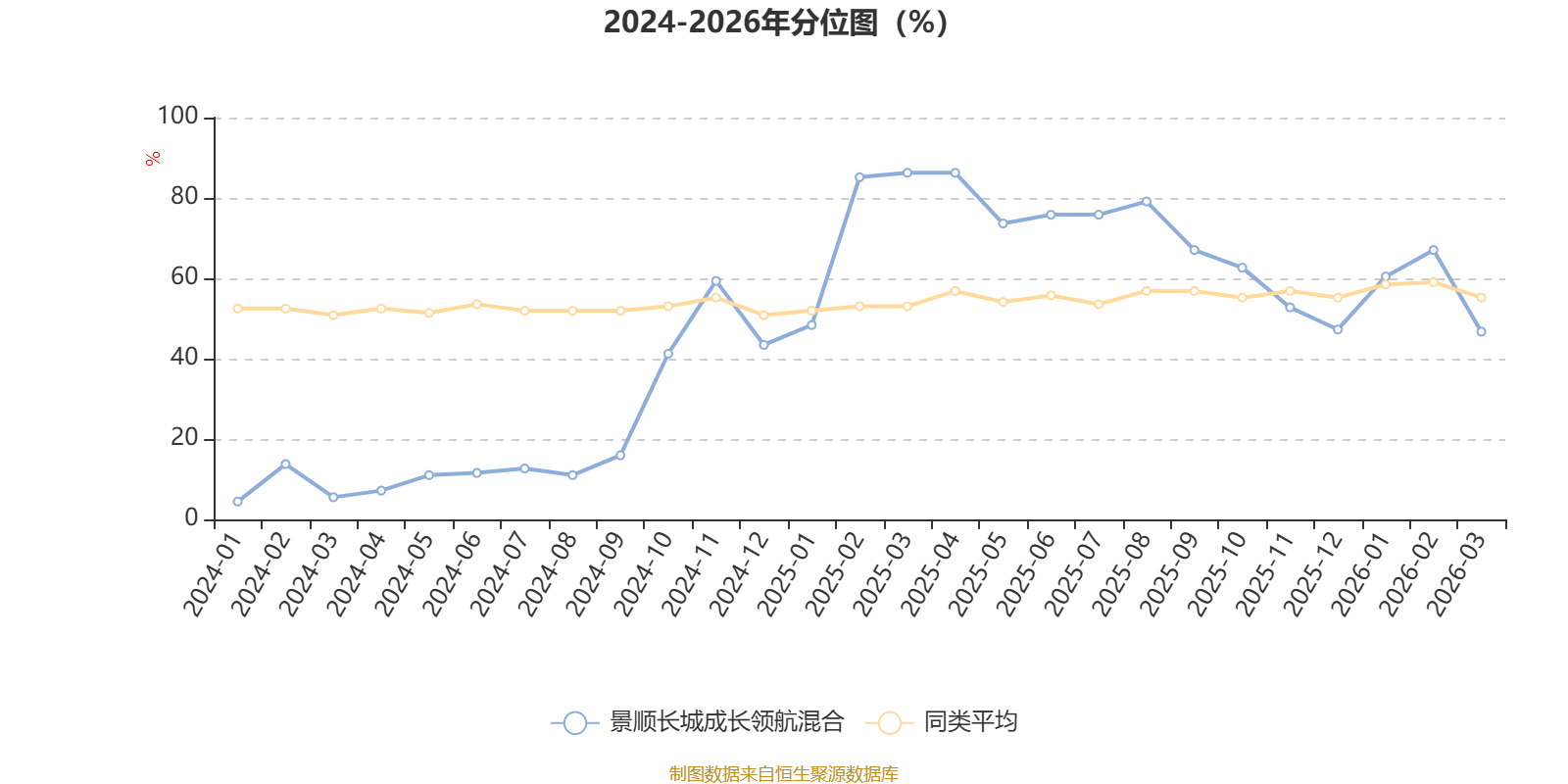 通过所选区间该基金净值增长率分位图,可以观察该基金与同类基金业绩比较情况。图为坐标原点到区间内某时点的净值增长率在同类基金中的分位数。