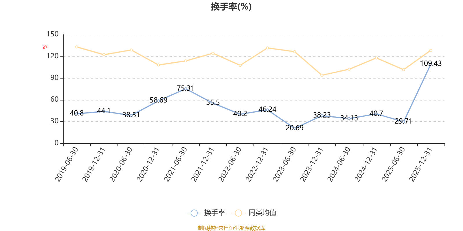 截至2025年12月31日,基金最近一年换手率约136.41%,持续低于同类均值。