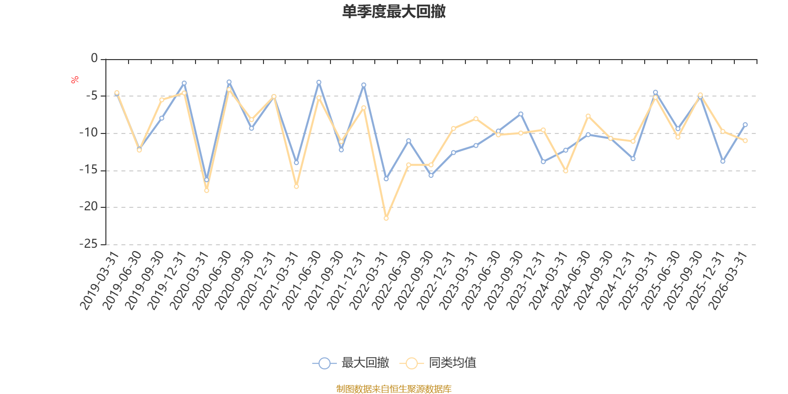 截至4月7日,基金近三年最大回撤为29.25%,同类可比基金排名27/57。单季度最大回撤出现在2020年一季度,为16.27%。