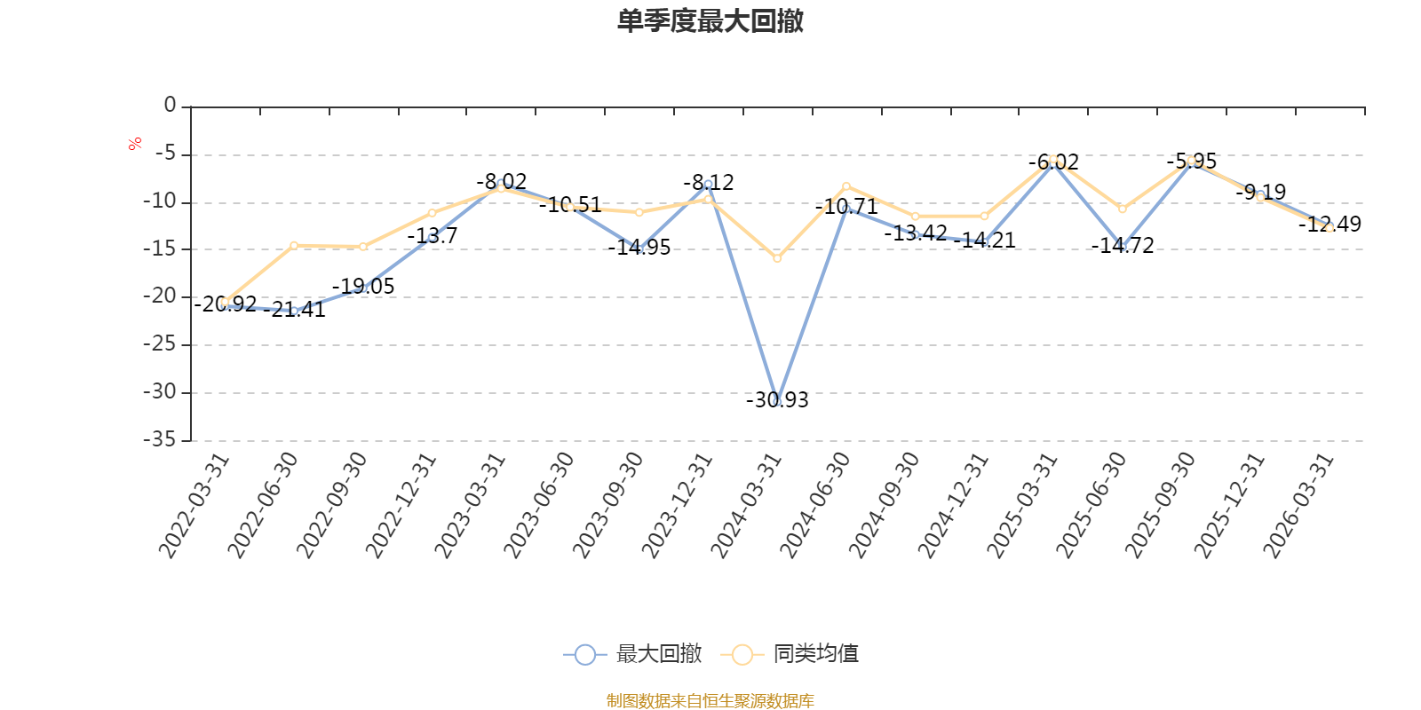 截至4月7日,基金近三年最大回撤为39.44%,同类可比基金排名133/157。单季度最大回撤出现在2024年一季度,为30.93%。