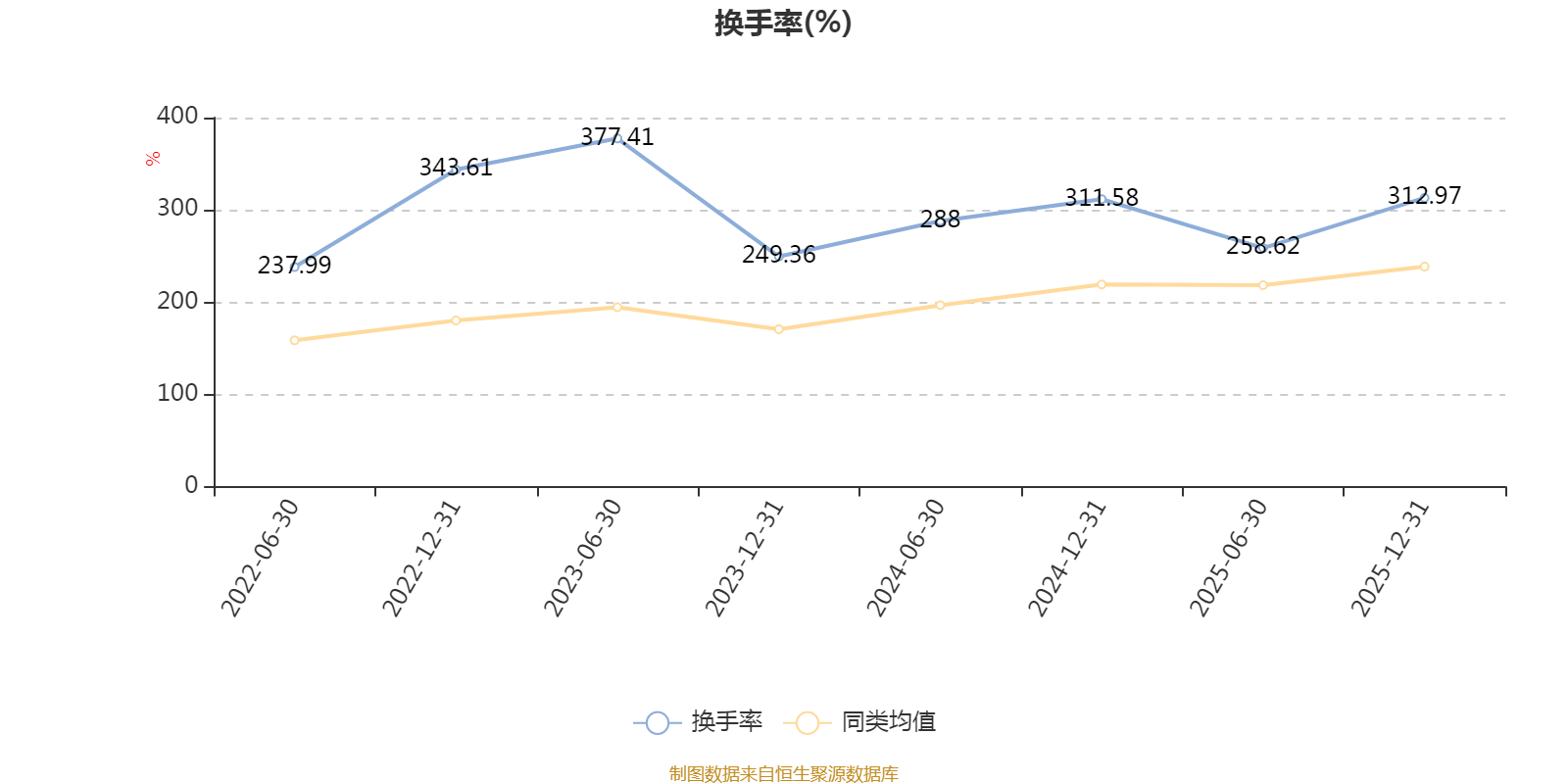截至2025年12月31日,基金最近一年换手率约567.75%,持续高于同类均值。