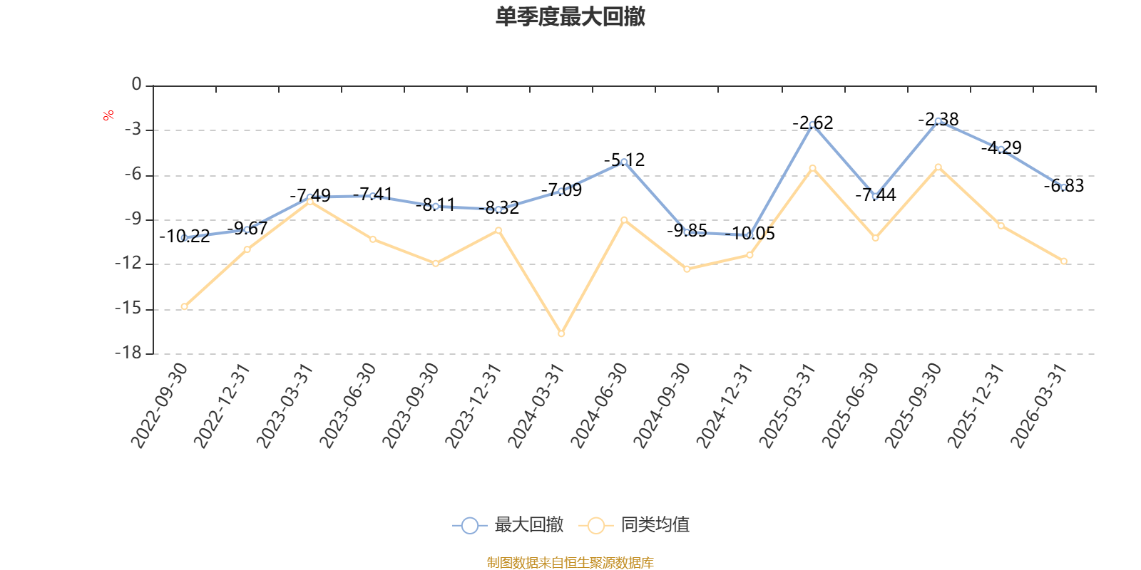 截至3月25日,基金近三年最大回撤为19.64%,同类可比基金排名7/87。单季度最大回撤出现在2022年三季度,为10.22%。