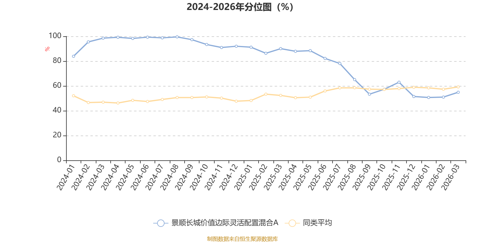 通过所选区间该基金净值增长率分位图,可以观察该基金与同类基金业绩比较情况。图为坐标原点到区间内某时点的净值增长率在同类基金中的分位数。