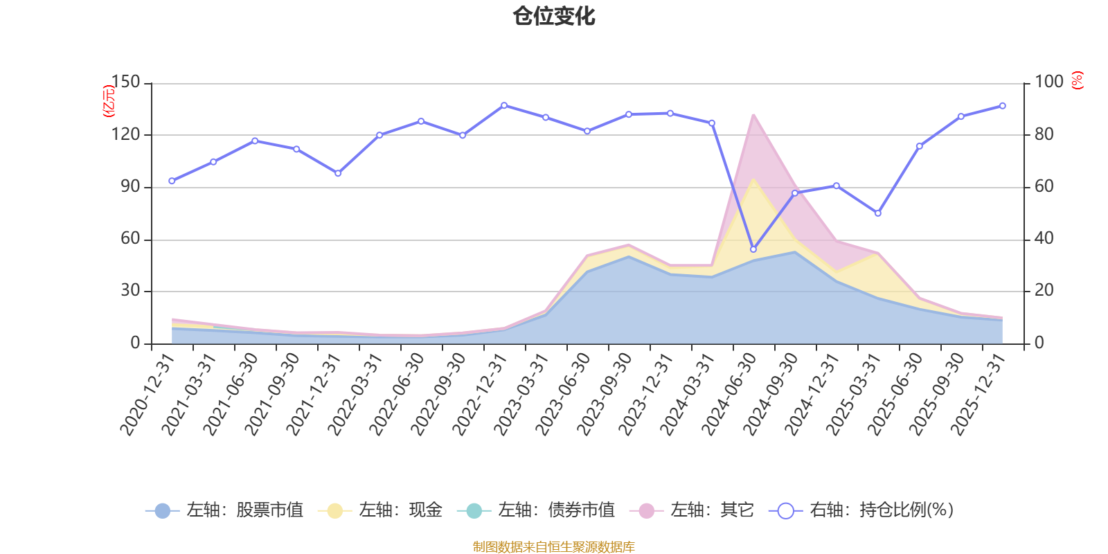 据定期报告数据统计,近三年平均股票仓位为74.06%,同类平均为72.57%。2022年末基金达到91.45%的最高仓位,2024年上半年末最低,为36.25%。