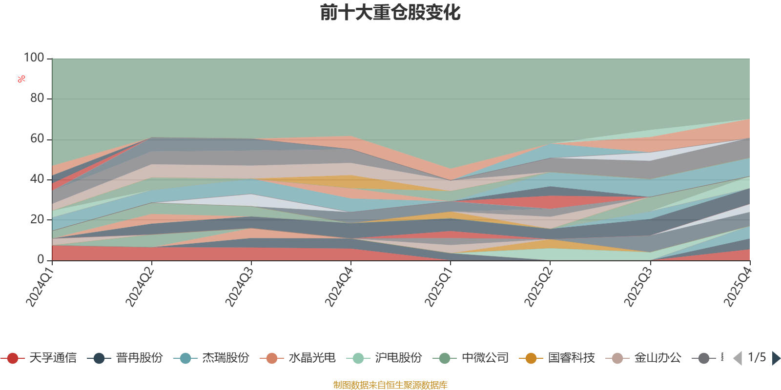 截至2025年末,基金十大重仓股分别是中际旭创、海光信息、新易盛、寒武纪、长川科技、杰瑞股份、小鹏集团-W、天孚通信、普冉股份、精测电子。