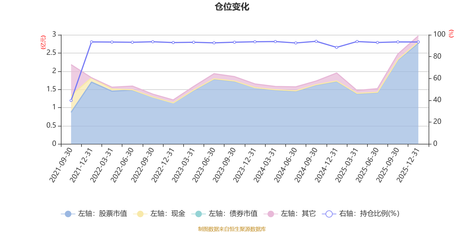 据定期报告数据统计,近三年平均股票仓位为92.93%,同类平均为88.36%。2024年三季度末基金达到94.03%的最高仓位,2021年三季度末最低,为39.85%。