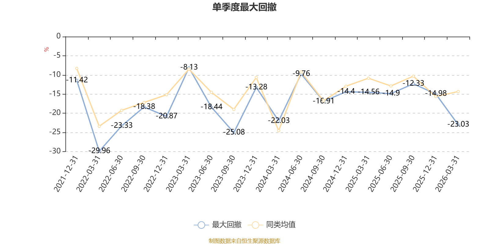 截至4月7日,基金近三年最大回撤为50.31%,同类可比基金排名47/53。单季度最大回撤出现在2022年一季度,为29.96%。