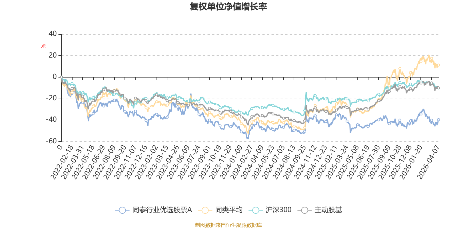 截至4月7日,同泰行业优选股票A近三个月复权单位净值增长率为-3.79%,位于同类可比基金36/63;近半年复权单位净值增长率为1.45%,位于同类可比基金31/63;近一年复权单位净值增长率为25.36%,位于同类可比基金55/63;近三年复权单位净值增长率为-21.44%,位于同类可比基金51/53。