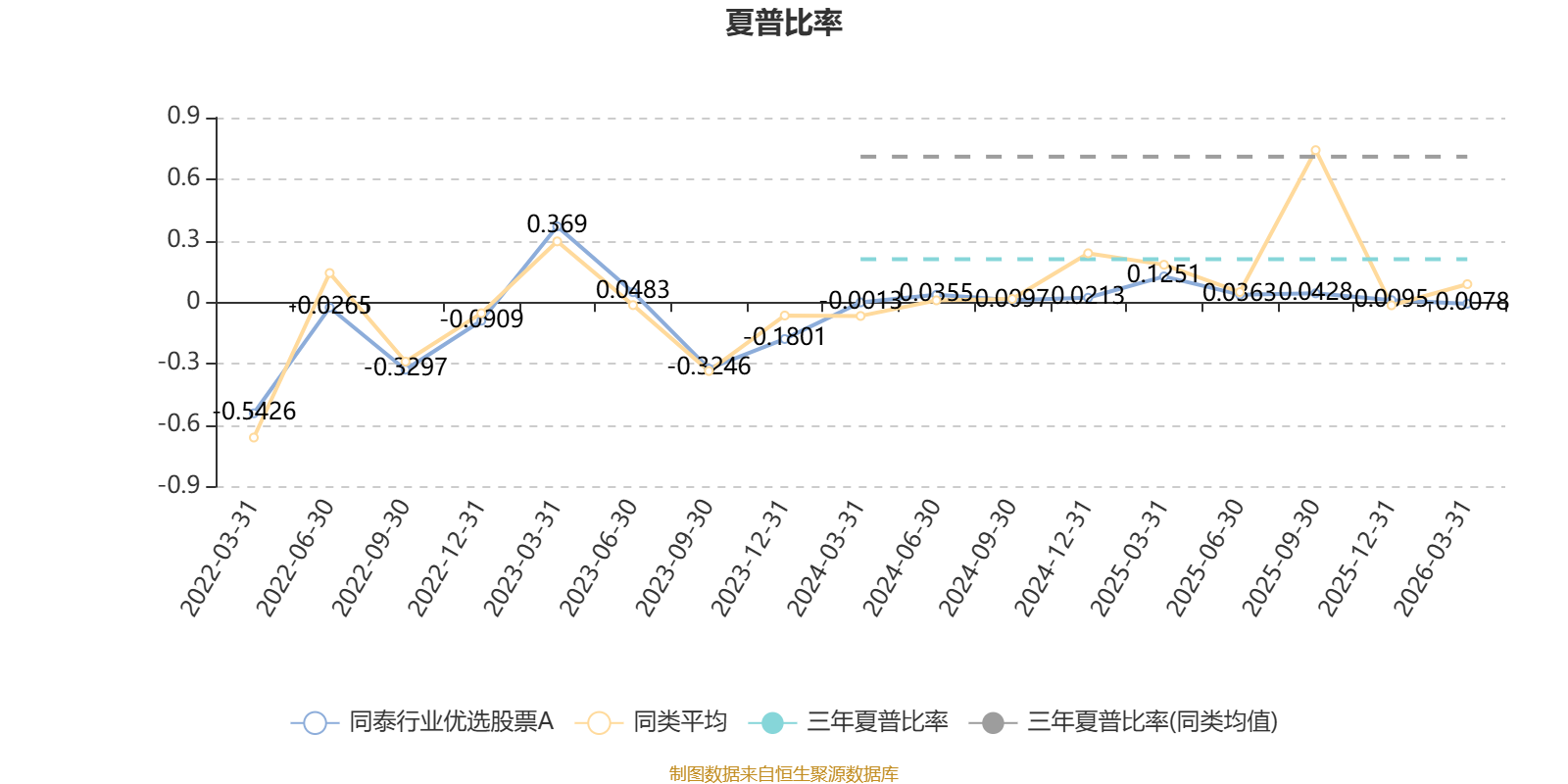截至3月31日,基金近三年夏普比率为0.2093,位于同类可比基金51/53。