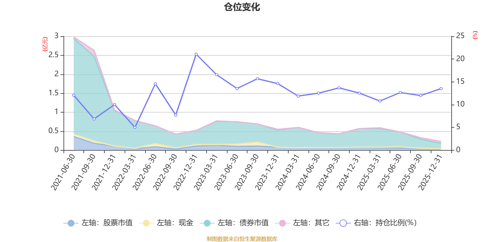 据定期报告数据统计,近三年平均股票仓位为13.33%,同类平均为19.2%。2022年末基金达到21.07%的最高仓位,2022年一季度末最低,为5%。