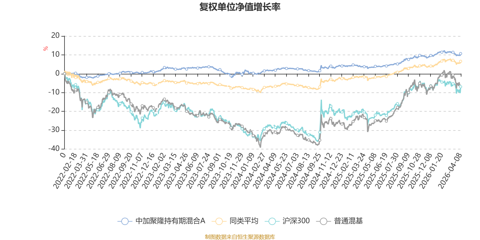 截至4月8日,中加聚隆持有期混合A近三个月复权单位净值增长率为-0.40%,位于同类可比基金465/629;近半年复权单位净值增长率为1.45%,位于同类可比基金297/629;近一年复权单位净值增长率为7.66%,位于同类可比基金309/629;近三年复权单位净值增长率为7.54%,位于同类可比基金398/581。