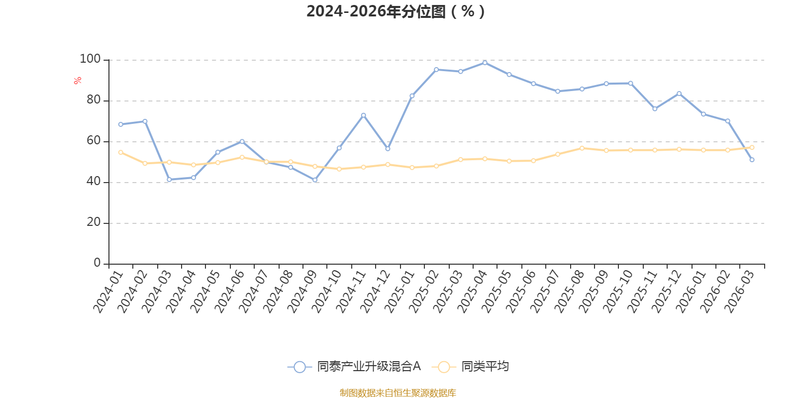 通过所选区间该基金净值增长率分位图,可以观察该基金与同类基金业绩比较情况。图为坐标原点到区间内某时点的净值增长率在同类基金中的分位数。