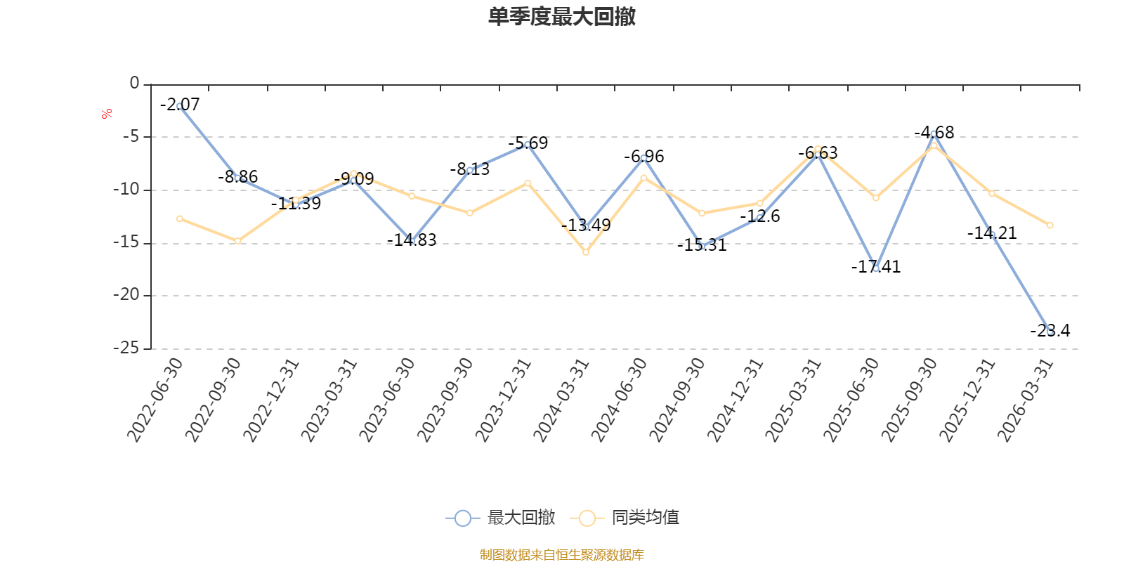 截至4月7日,基金近三年最大回撤为32.03%,同类可比基金排名163/394。单季度最大回撤出现在2026年一季度,为23.4%。