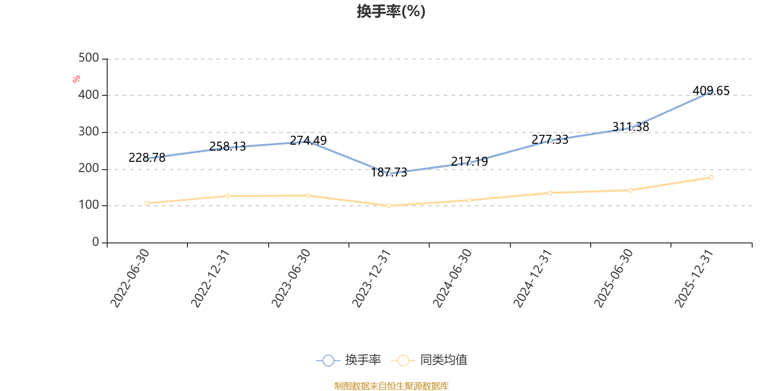 截至2025年12月31日,基金最近一年换手率约724.5%,持续高于同类均值。