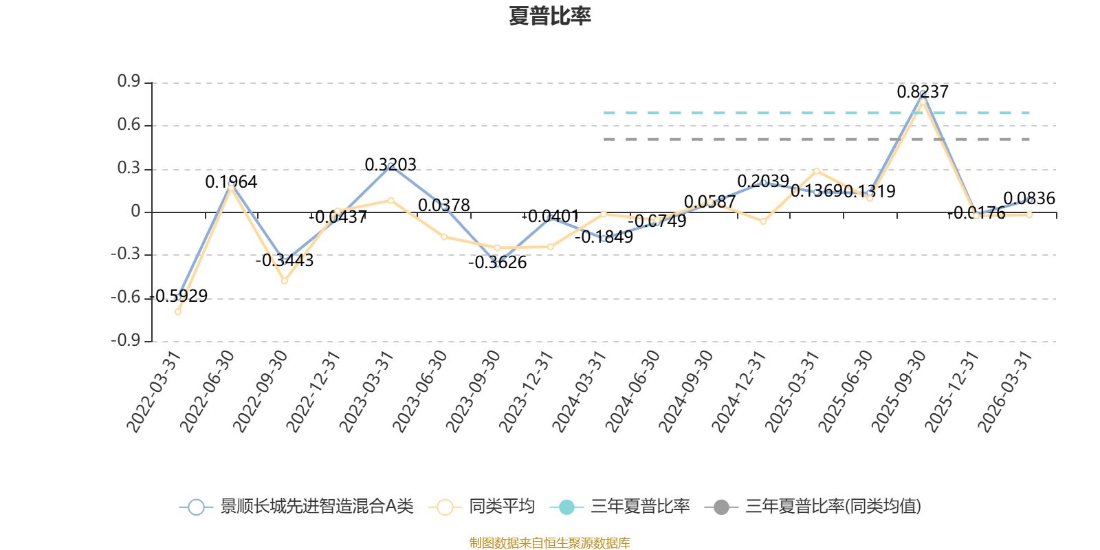 截至3月31日,基金近三年夏普比率为0.6882,位于同类可比基金45/178。