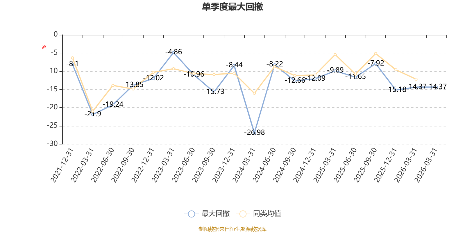 截至4月7日,基金近三年最大回撤为40.97%,同类可比基金排名154/178。单季度最大回撤出现在2024年一季度,为26.98%。