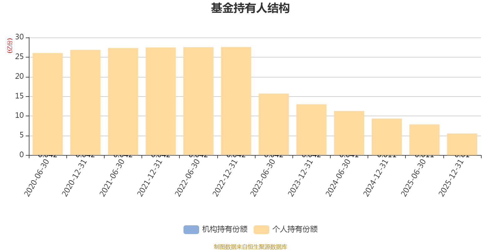 截至2025年12月31日,基金持有人共计7465户,合计持有5.52亿份。其中管理人员工持有236.08万份,占比0.43%,机构持有份额占比0.18%,个人投资者占比99.82%。