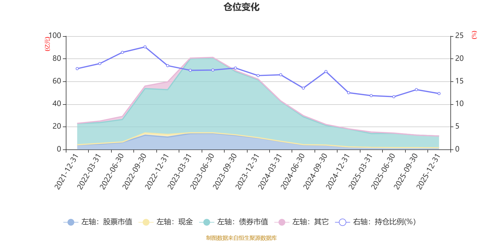 据定期报告数据统计,近三年平均股票仓位为14.85%,同类平均为19.2%。2022年三季度末基金达到22.63%的最高仓位,2025年上半年末最低,为11.65%。