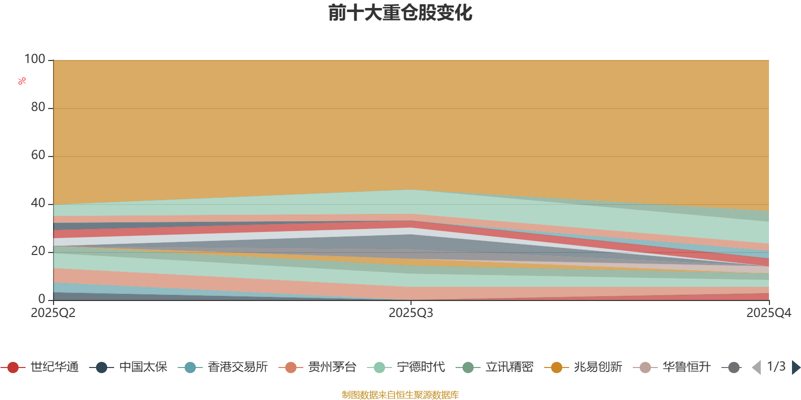 截至2025年末,基金十大重仓股分别是腾讯控股、荣盛石化、中国平安、紫金矿业、华鲁恒升、中芯国际、宁德时代、世纪华通、立讯精密、贵州茅台。