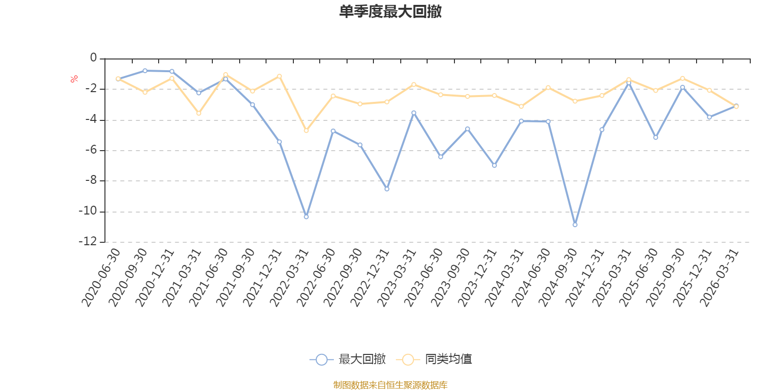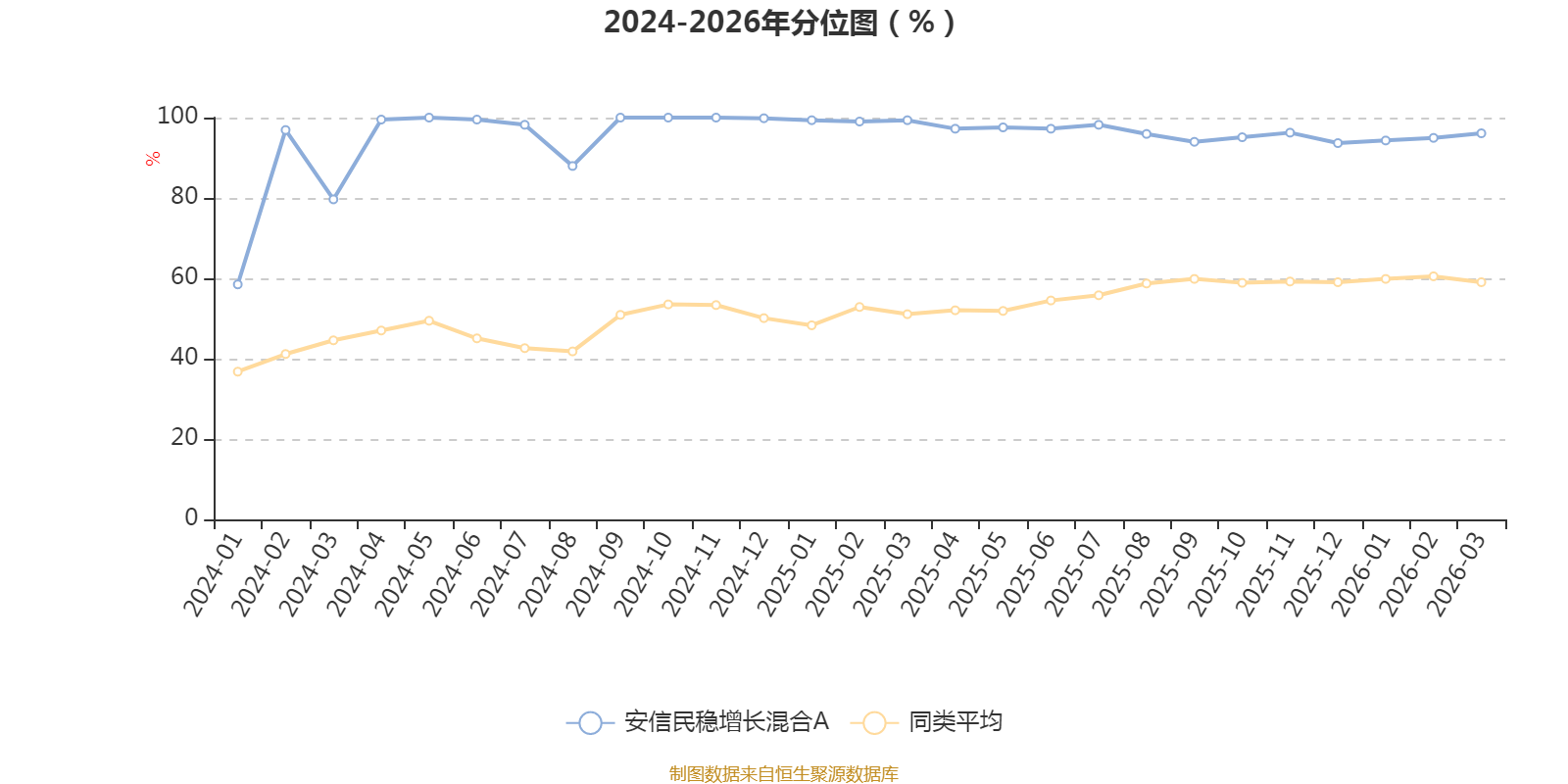 通过所选区间该基金净值增长率分位图,可以观察该基金与同类基金业绩比较情况。图为坐标原点到区间内某时点的净值增长率在同类基金中的分位数。