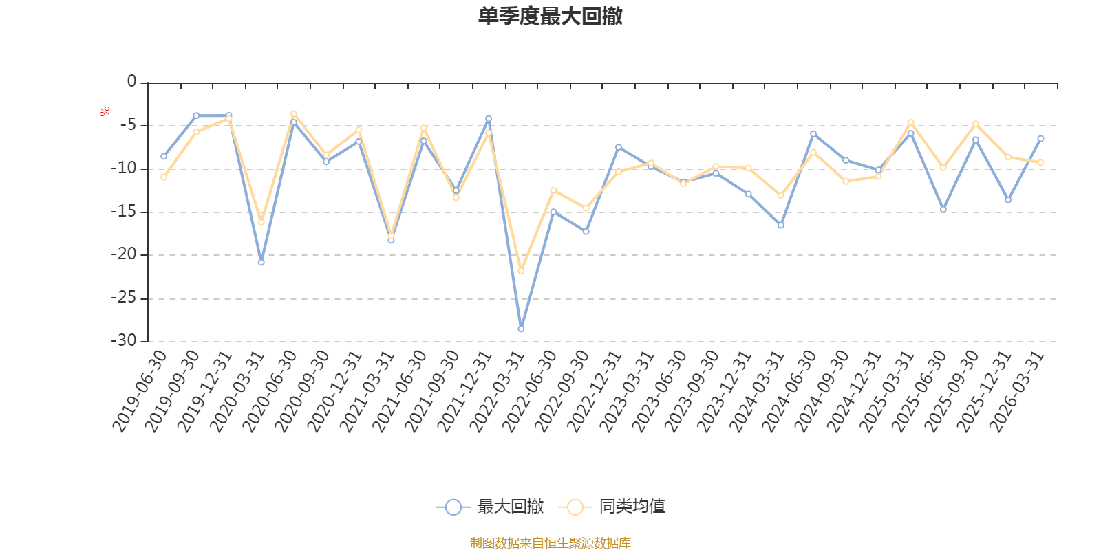 截至4月7日,基金近三年最大回撤为34.81%,同类可比基金排名13/20。单季度最大回撤出现在2022年一季度,为28.56%。