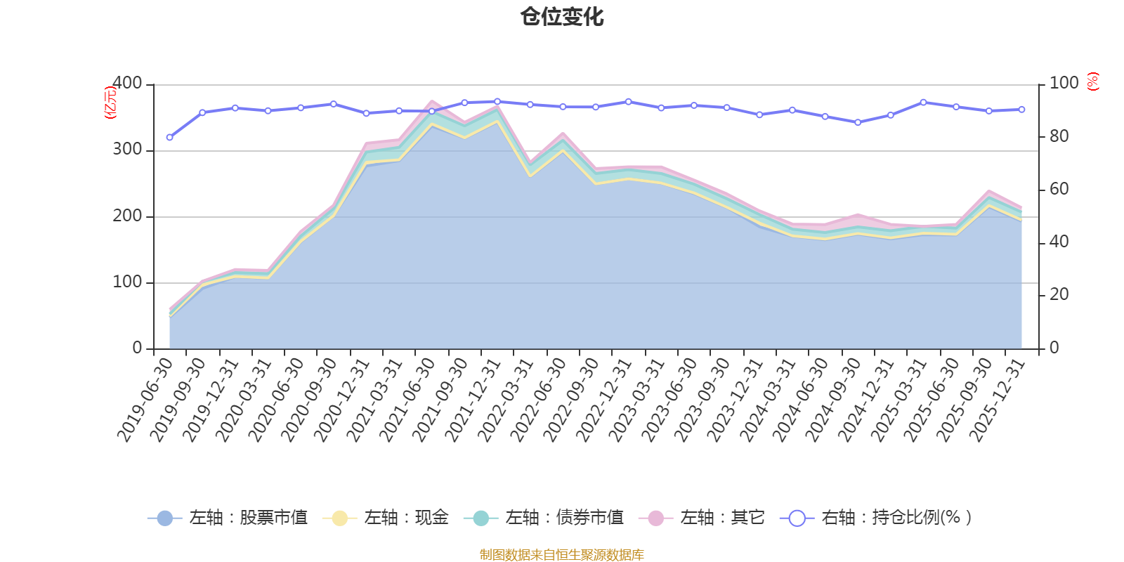 据定期报告数据统计,近三年平均股票仓位为89.99%,同类平均为86.82%。2021年末基金达到93.51%的最高仓位,2019年上半年末最低,为79.96%。