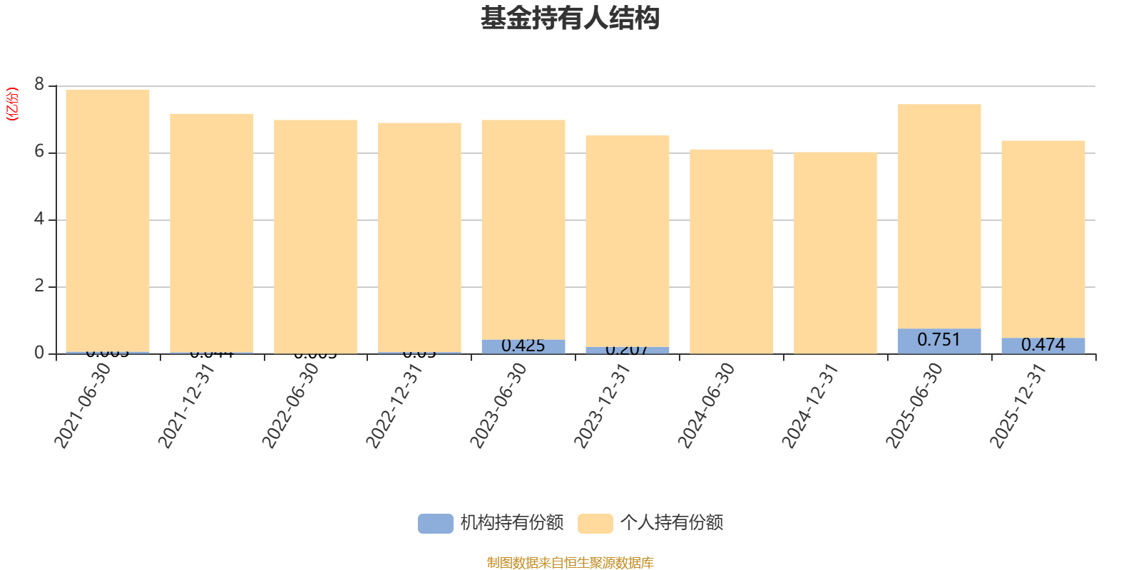 截至2025年12月31日,基金持有人共计2.45万户,合计持有6.35亿份。其中管理人员工持有605.32万份,占比0.95%,机构持有份额占比7.46%,个人投资者占比92.54%。