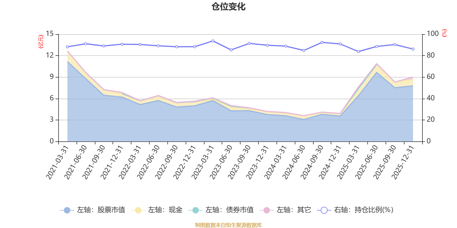 据定期报告数据统计,近三年平均股票仓位为88.85%,同类平均为88.26%。2023年一季度末基金达到93.72%的最高仓位,2025年一季度末最低,为83.8%。