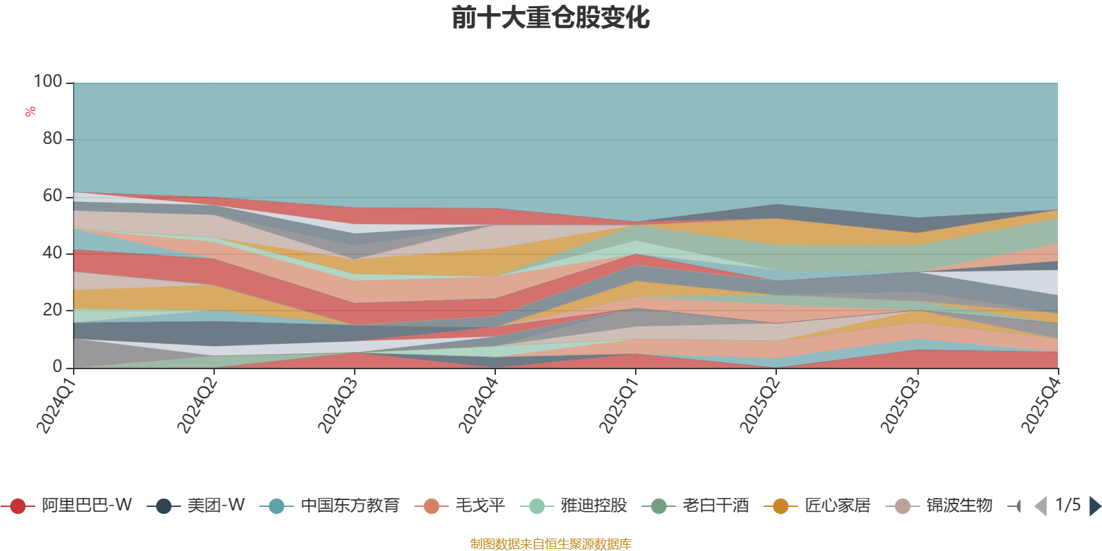 该基金持股集中度较高。截至2025年末,基金十大重仓股分别是泡泡玛特、牧原股份、腾讯控股、迎驾贡酒、阿里巴巴-W、泸州老窖、毛戈平、山西汾酒、安琪酵母、老铺黄金。