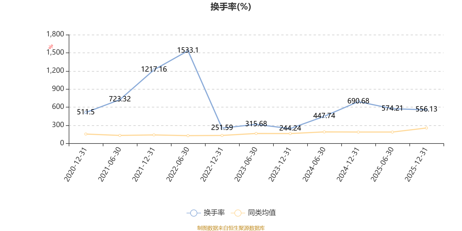 截至2025年12月31日,基金最近一年换手率约1097.34%,持续高于同类均值。