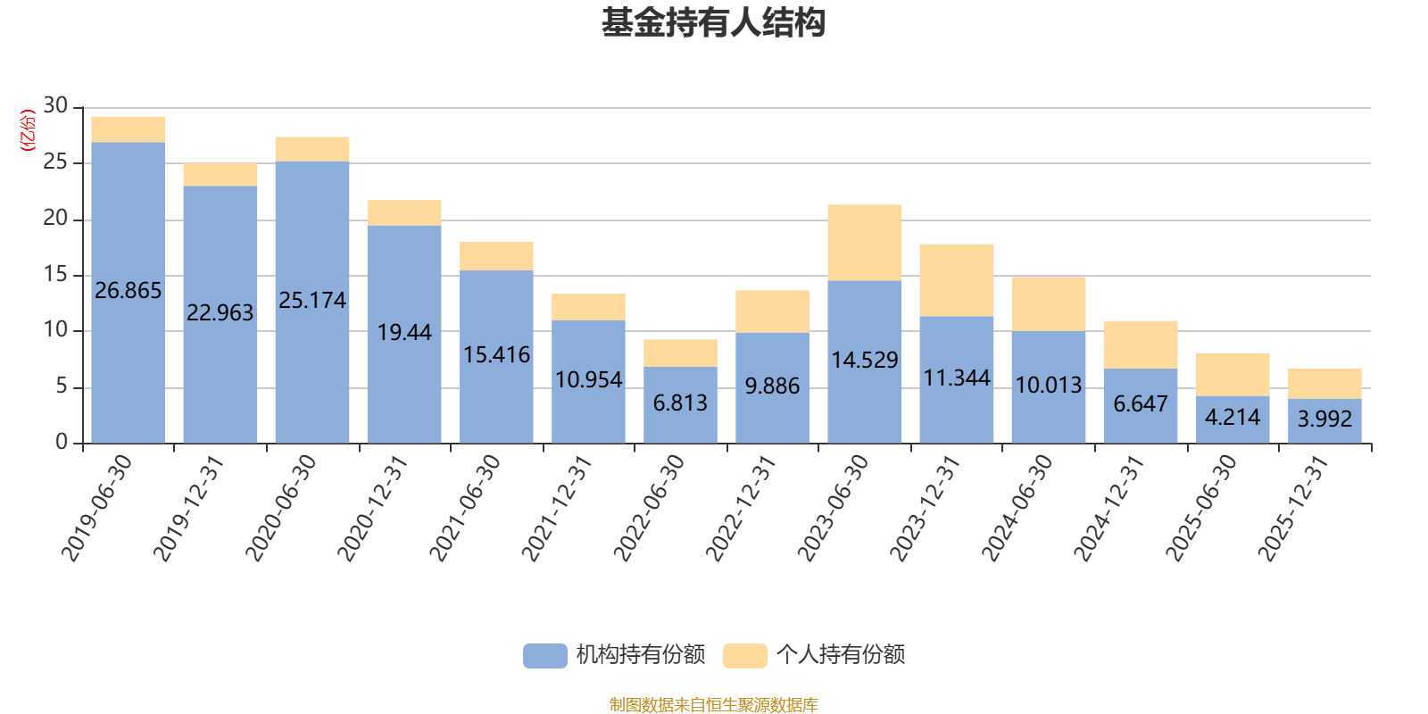截至2025年12月31日,基金持有人共计6.43万户,合计持有6.65亿份。其中管理人员工持有662.47万份,占比1.00%,机构持有份额占比60.01%,个人投资者占比39.99%。