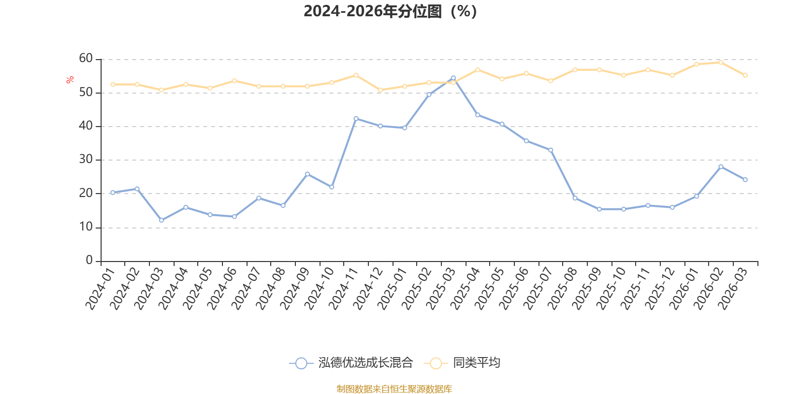 通过所选区间该基金净值增长率分位图,可以观察该基金与同类基金业绩比较情况。图为坐标原点到区间内某时点的净值增长率在同类基金中的分位数。