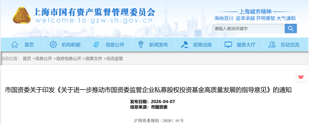 【导读】上海发布国资基金新规,强调领投能力