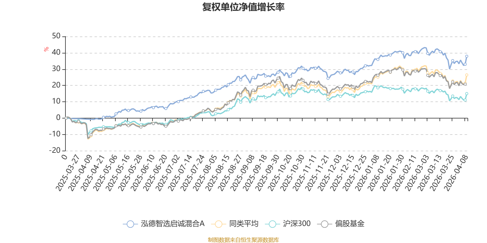 截至4月8日,泓德智选启诚混合A近三个月复权单位净值增长率为1.45%,位于同类可比基金273/689;近半年复权单位净值增长率为7.63%,位于同类可比基金221/689;近一年复权单位净值增长率为38.73%,位于同类可比基金350/685。