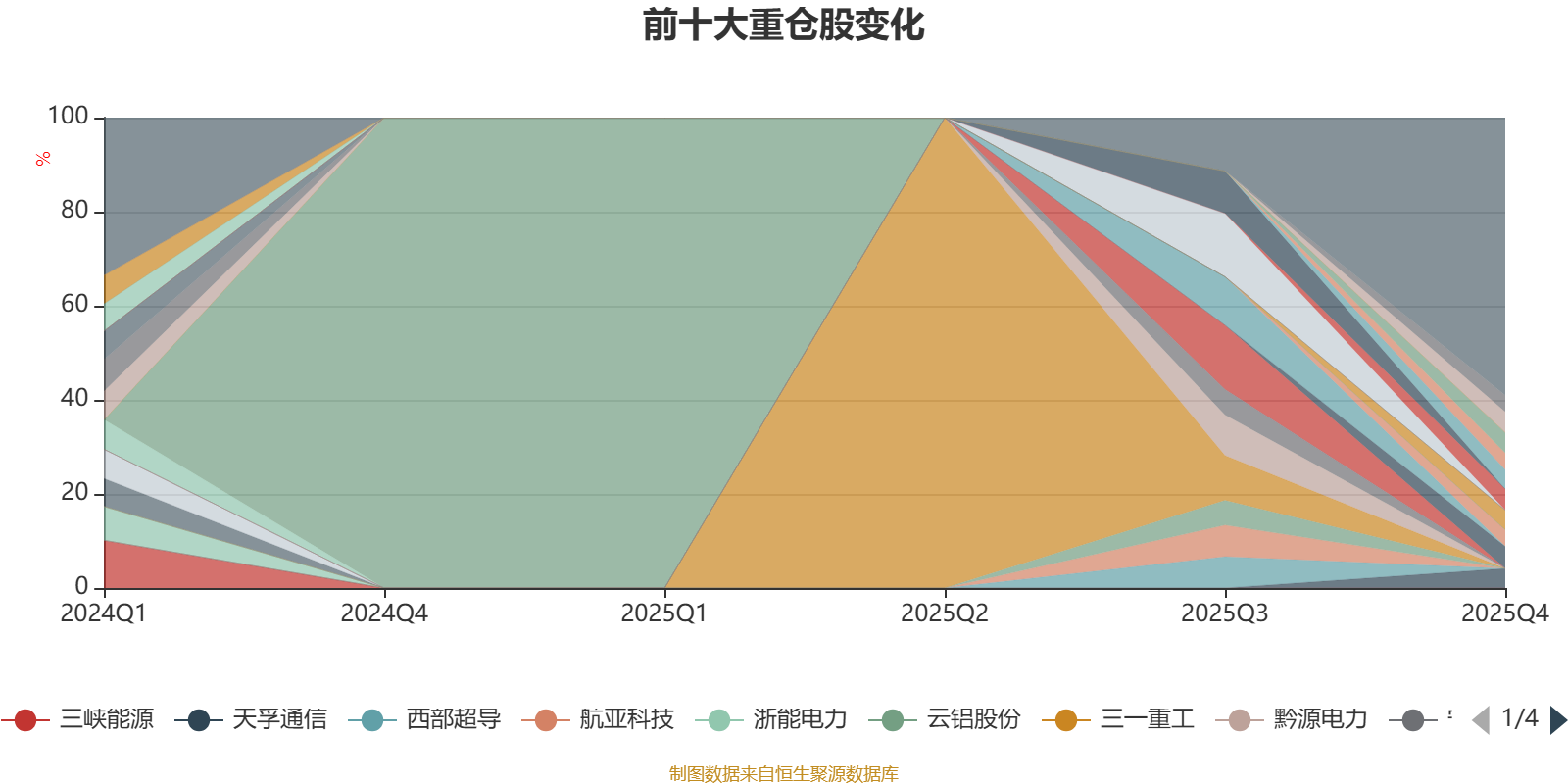 截至2025年末,基金十大重仓股分别是寒武纪、领益智造、中际旭创、国盾量子、仕佳光子、天孚通信、新易盛、利柏特、云南锗业、广联航空。