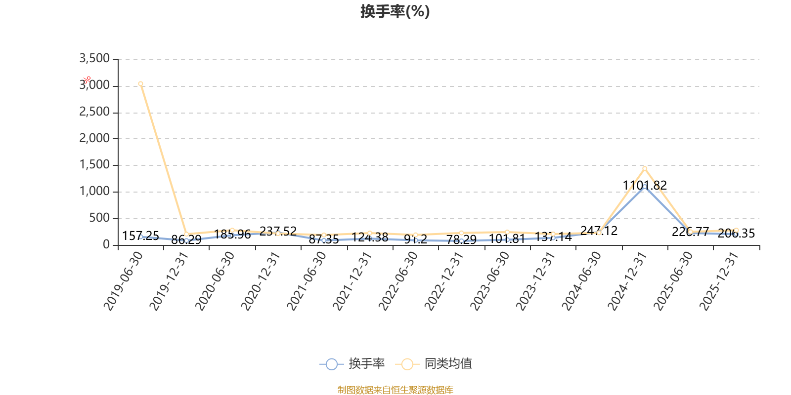 截至2025年12月31日,基金最近一年换手率约350.37%,持续1年低于同类均值。