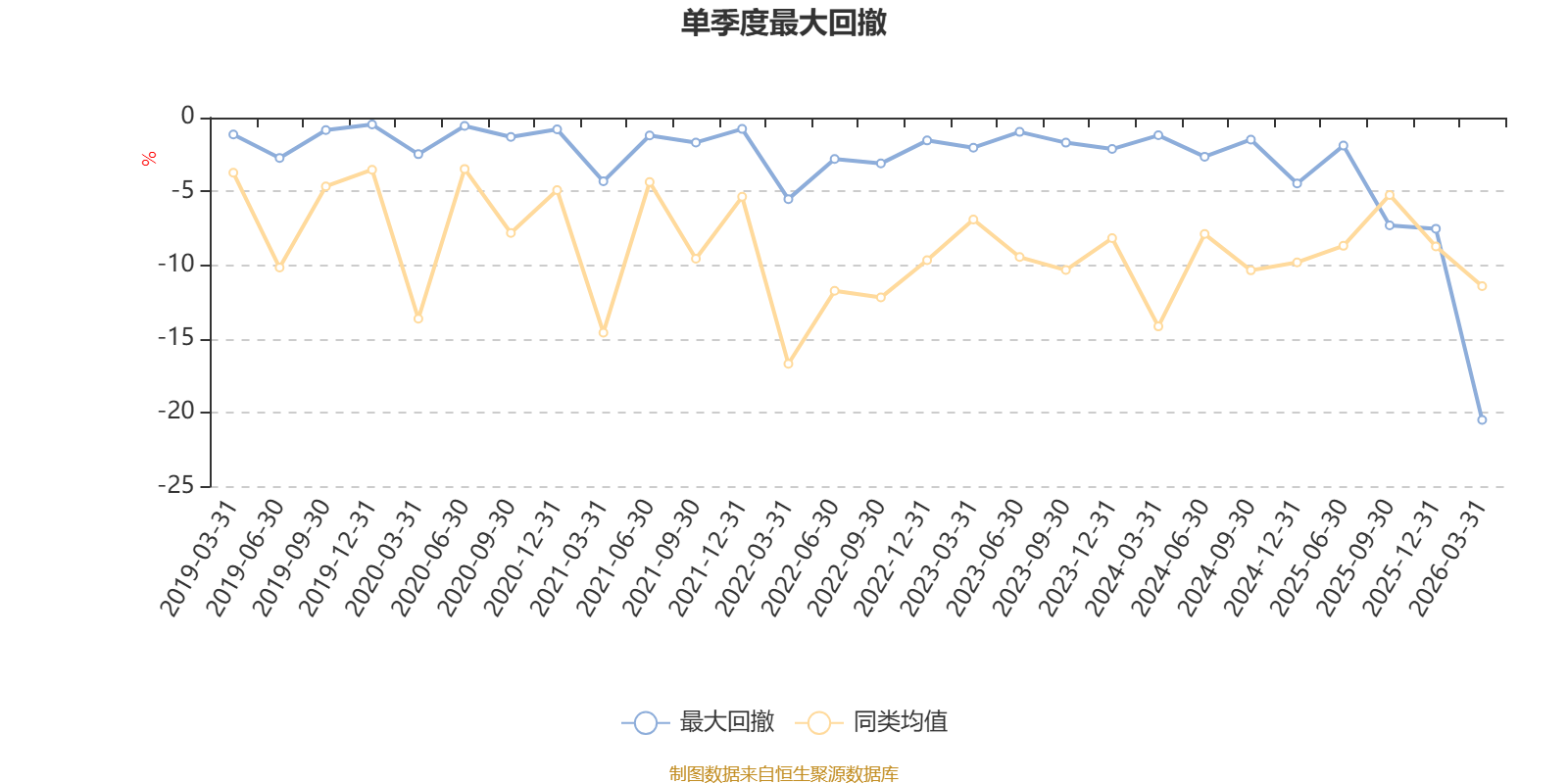 截至4月7日,基金近三年最大回撤为20.49%,同类可比基金排名302/1264。单季度最大回撤出现在2026年一季度,为20.49%。