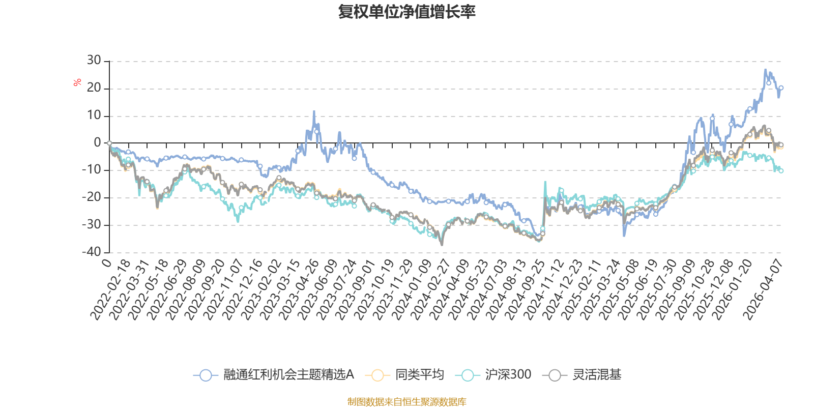 截至4月7日,融通红利机会主题精选A近三个月复权单位净值增长率为11.87%,位于同类可比基金31/1287;近半年复权单位净值增长率为11.88%,位于同类可比基金127/1286;近一年复权单位净值增长率为82.61%,位于同类可比基金111/1286;近三年复权单位净值增长率为14.69%,位于同类可比基金539/1286。