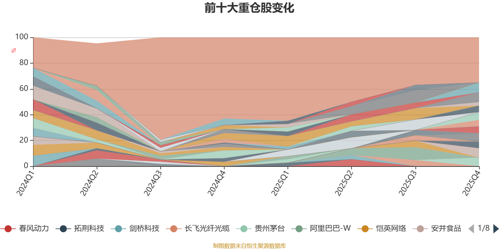 截至2025年末,基金十大重仓股分别是招商轮船、美的集团、安井食品、贵州茅台、分众传媒、中远海能、水星家纺、中国海洋石油、洽洽食品、中国石油股份。
